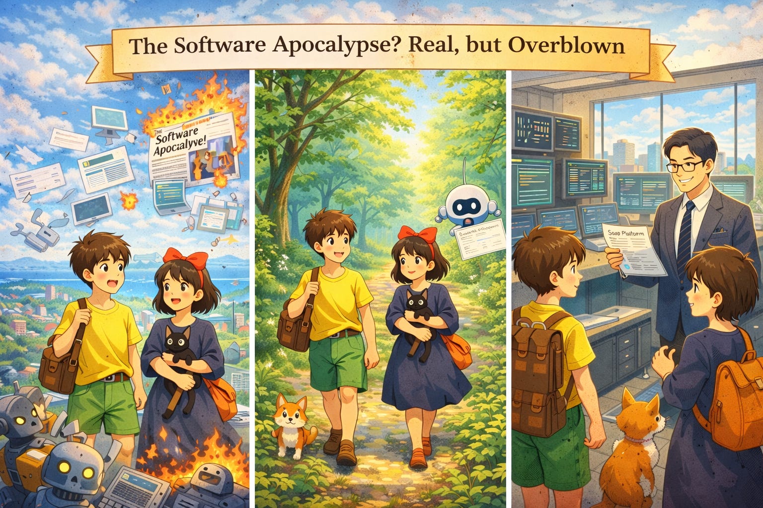 Right now, there’s a fever running through Sand Hill Road and the analyst desks of every major bank. The thesis goes like this: agentic coding can build software applications in microseconds, therefore no enterprise customer will ever buy a SaaS subscription again, therefore every SaaS company is dead, therefore sell everything, therefore the sky is falling. It’s a neat little syllogism. It’s also wrong. Not entirely wrong — which is what makes it dangerous — but wrong in the ways that matter.